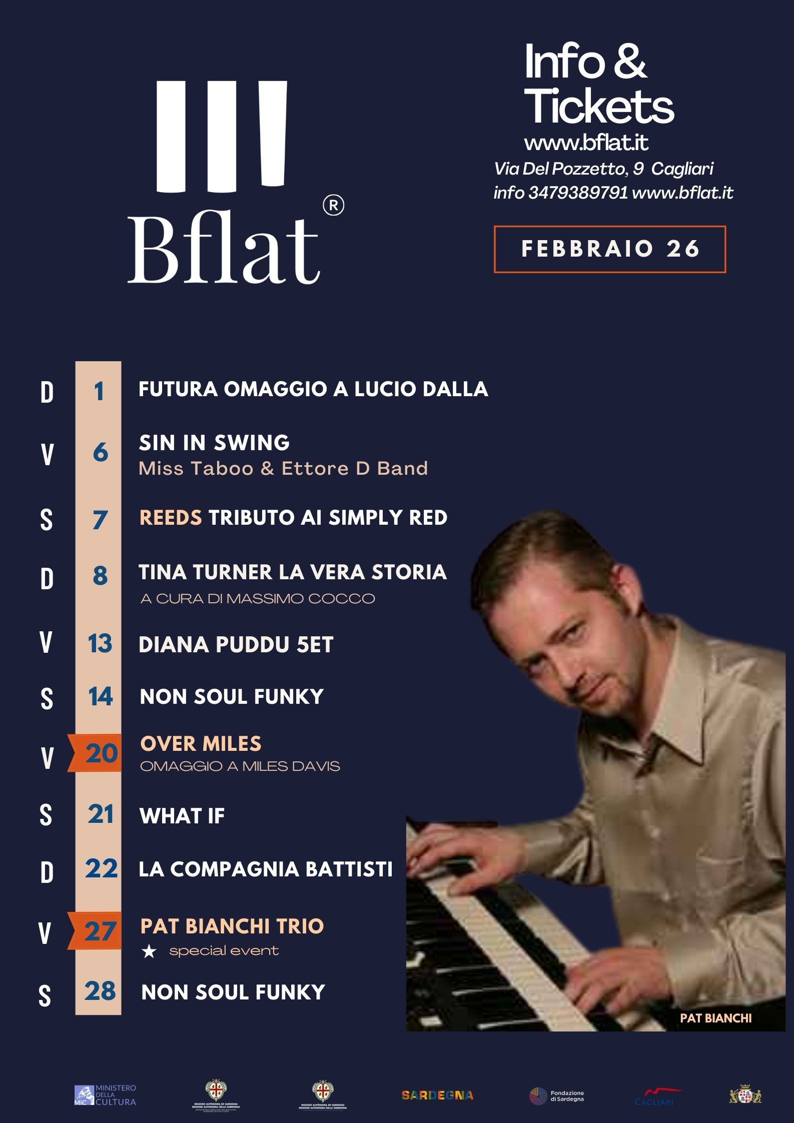 SABATO 30 NOVEMBRE ORE 22:30 NON SOUL FUNKY La storica band dei NonSoulFunky torna al Bflat. Vi ricordiamo che i posti sono limitati. Il consiglio è di prenotare per tempo. Nicola Marogna /V Stefano Montalbano /G Simone Belfiori...